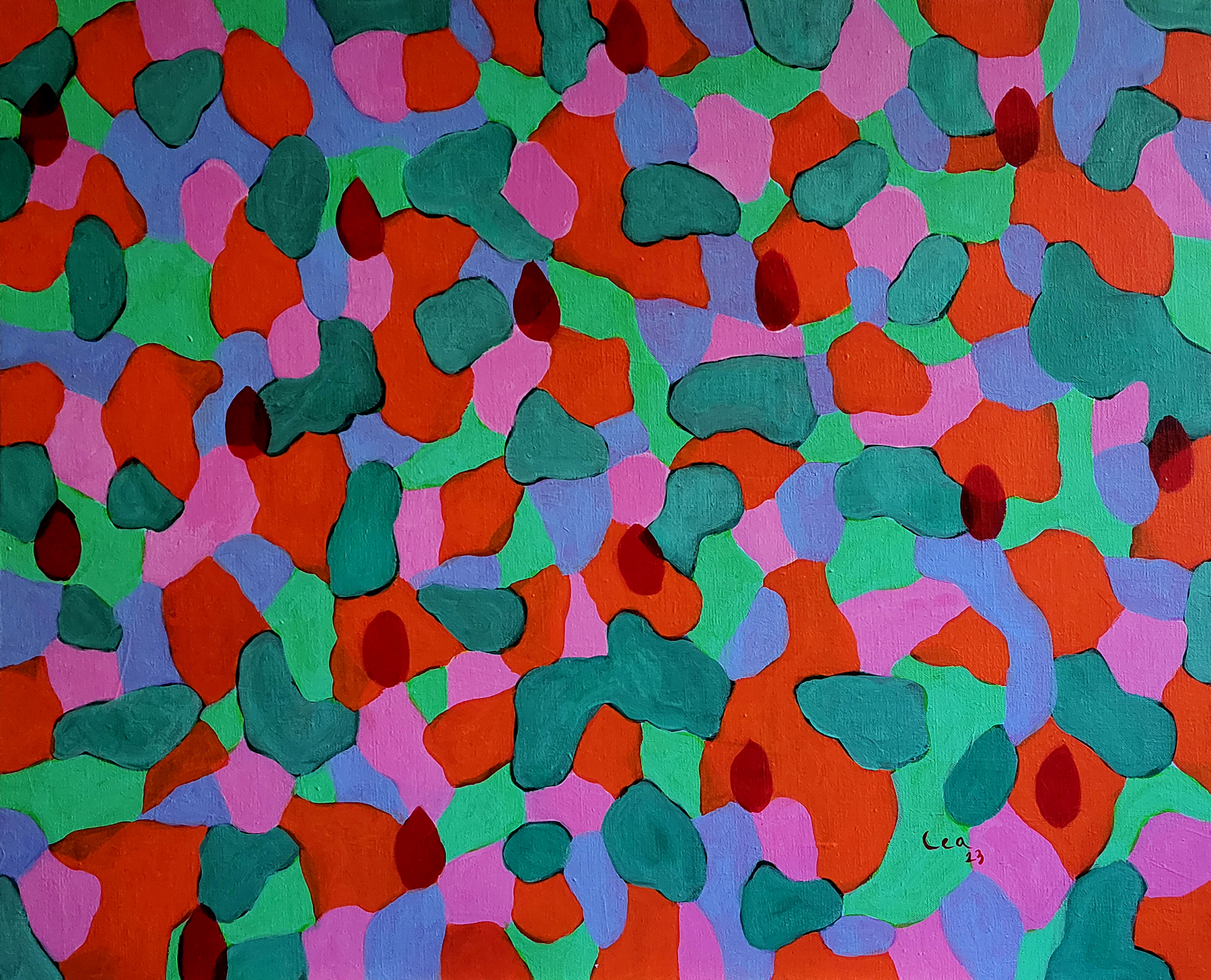 My new solo exhibition project, titled “Hi! There,” began in 2023. After gone through years of lock down from the pandemic, so many things has become changed and disappeared. People are isolated from each other and fragmented. As an artist, I missed so much of joy and happiness we share when we are together with others. I began to feel urgent needs to bring these to my work. In this series, bright, vivid, colorful, dynamic, alive harmony in colors and shapes is my main concern.